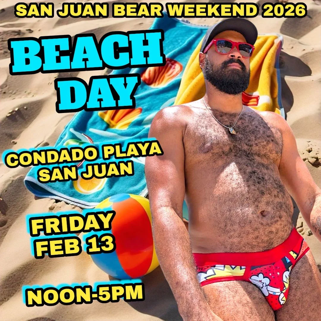 Official Friday Daytime Event. Beach Day at Condado Playa! Meet us in front of the Tryst Hotel, look for the Bear Flag. Oasis Bar will be hosting us with a cash bar and full food menu for us. You can buy drinks and bring them onto the beach! **VIP pass holders receive beach chairs and umbrellas upon arrival.